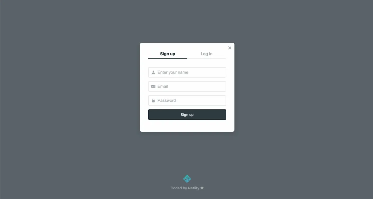 「Login with Netlify Identity」をクリックし、Sign upします。