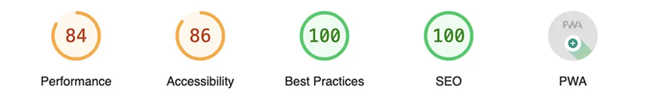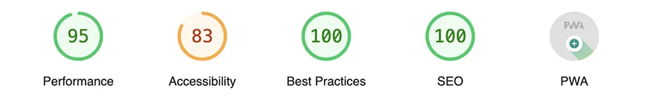 (Accessibility の数値が少し上がっているのは背景と文字色のコントラストを少し変更したので、Next.jsへの移行によるものではありません。)